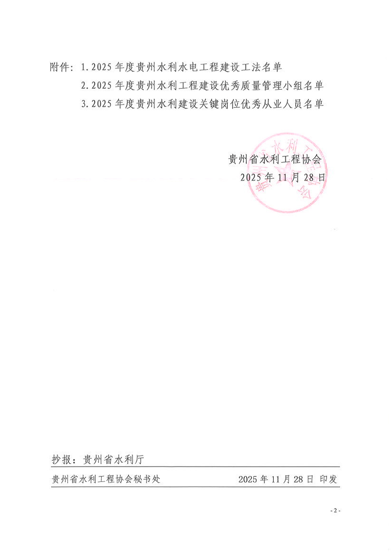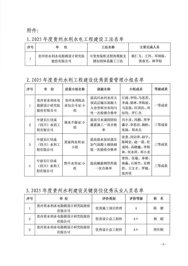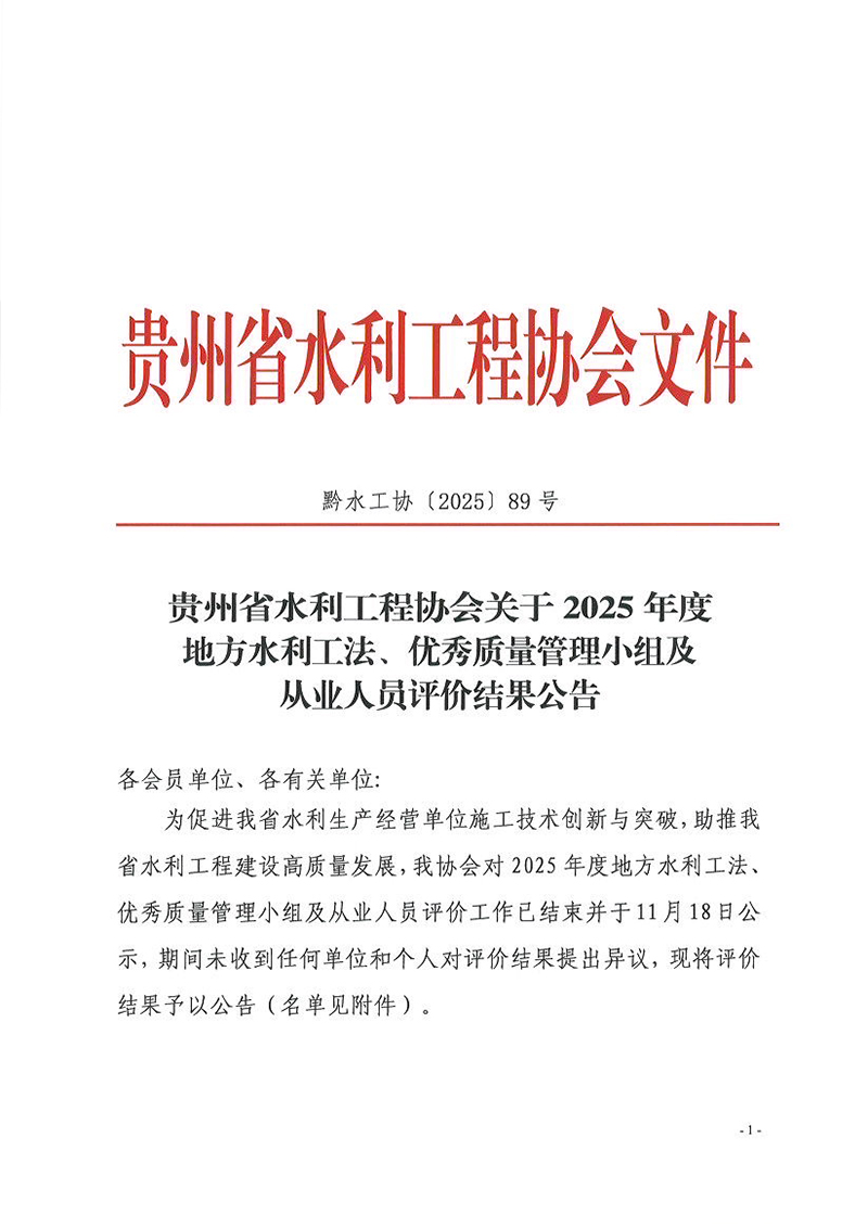 关于2025年度地方水利工法、优秀质量管理小组及从业人员评价结果公告