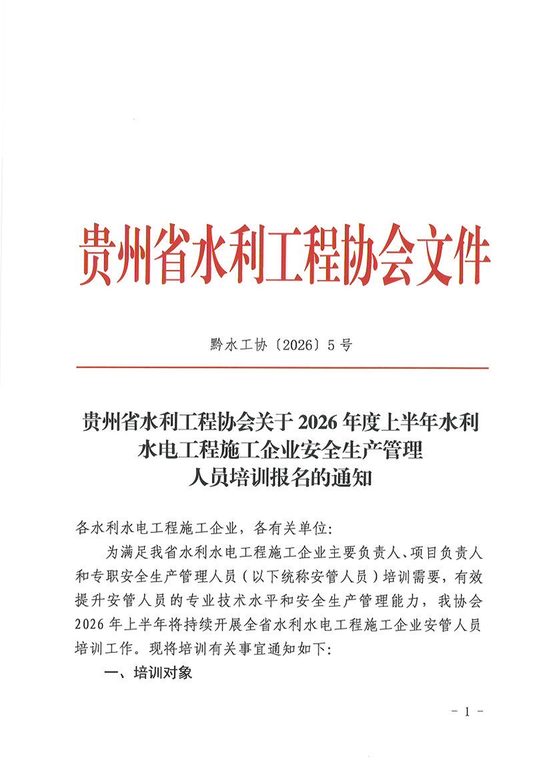 关于2026年度上半年水利水电工程施工企业安全生产管理人员培训报名的通知