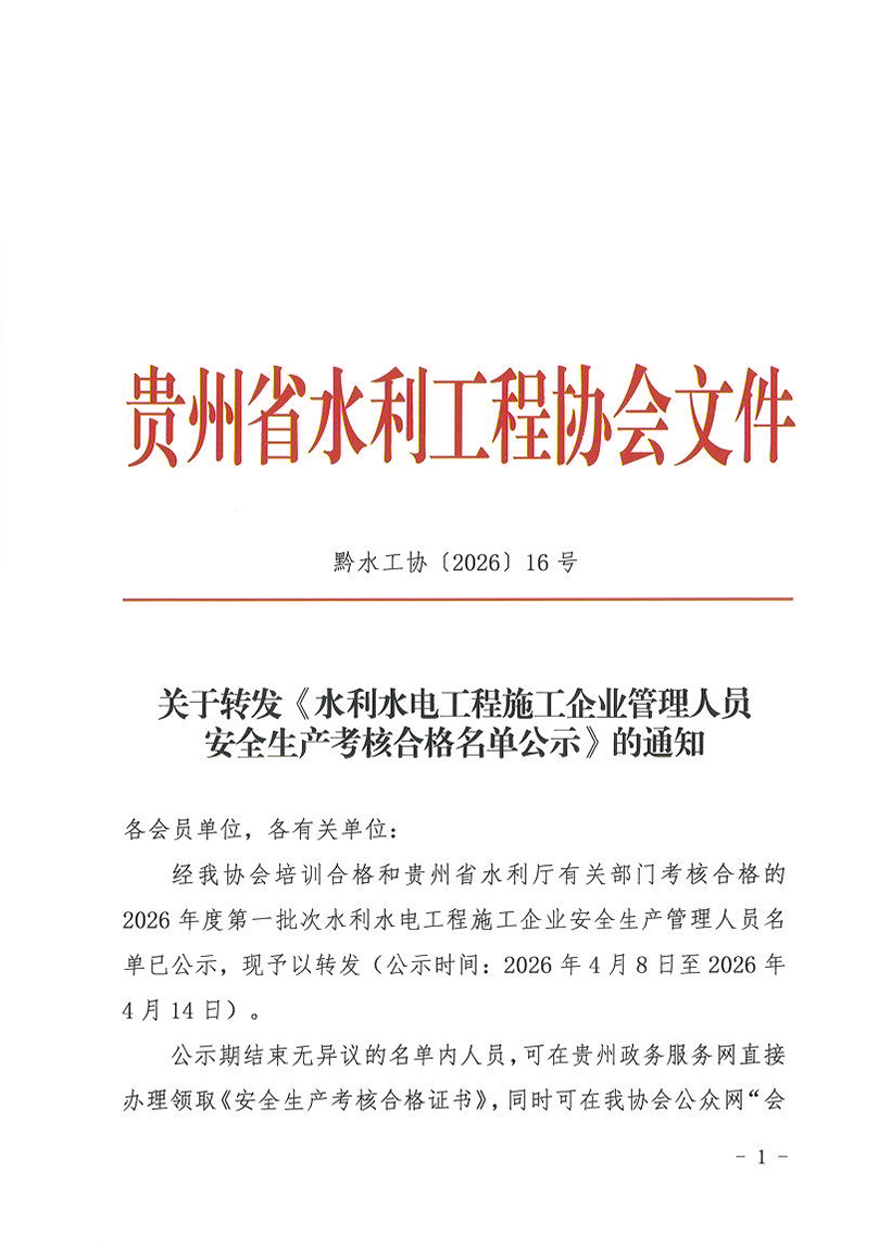 关于转发《水利水电工程施工企业管理人员安全生产考核合格名单公示》的通知