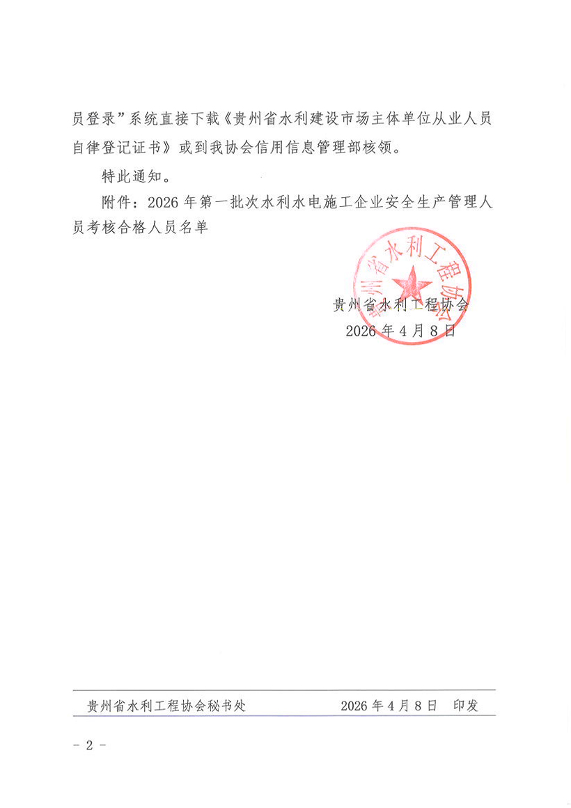 2026年第一批次水利水电工程施工企业管理人员安全生产考核合格名单