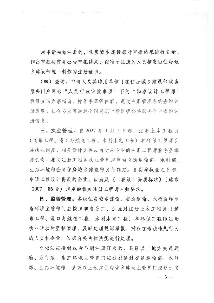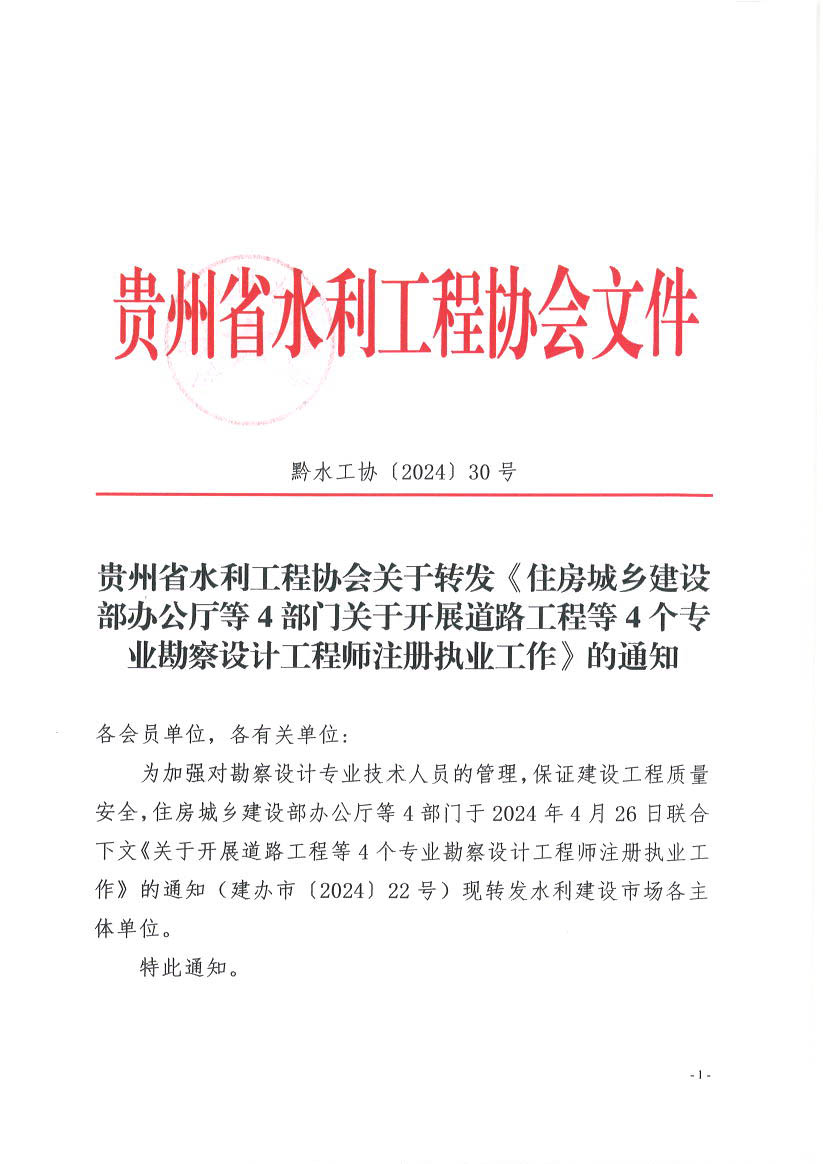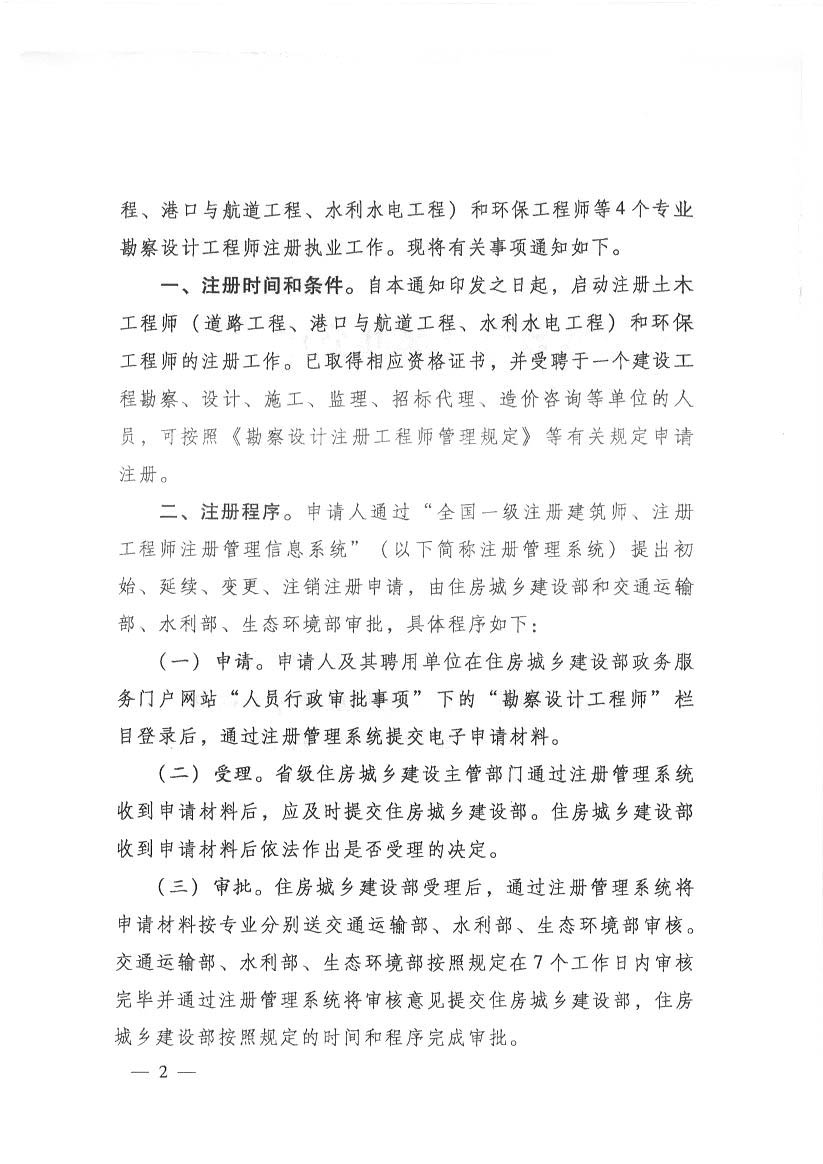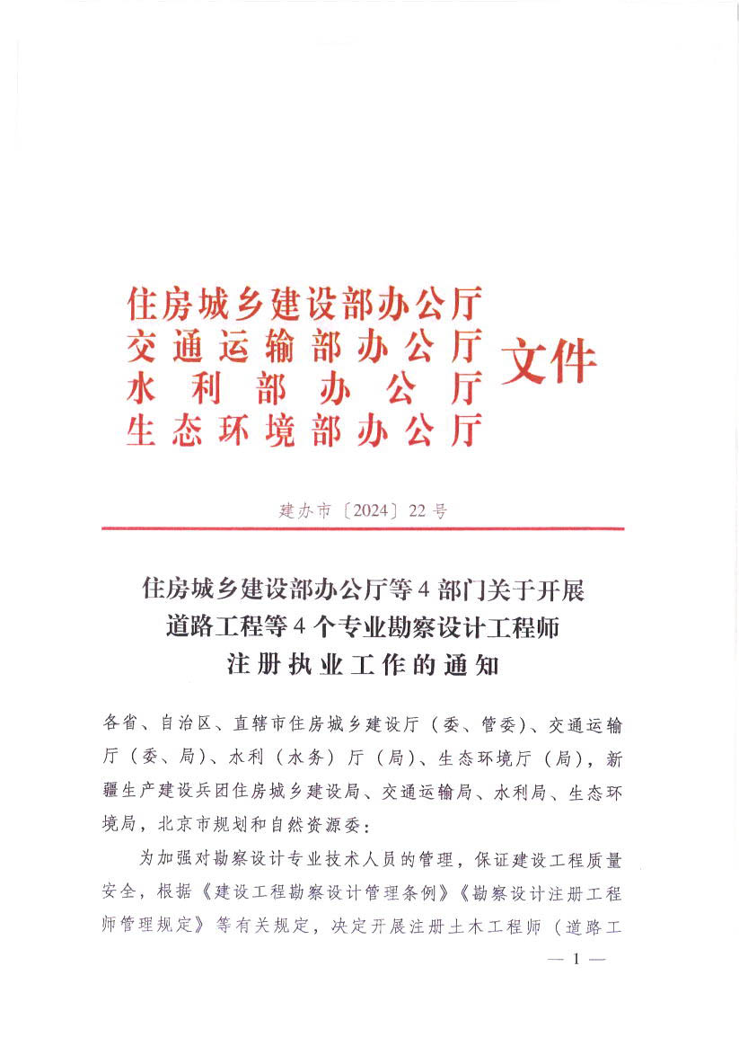 关于转发《住房城乡建设部办公厅等4部门关于开展道路工程等4个专业勘察设计工程师注册执业工作》的通知