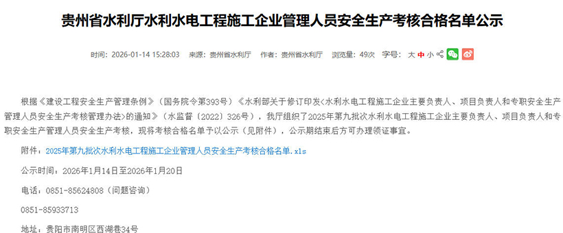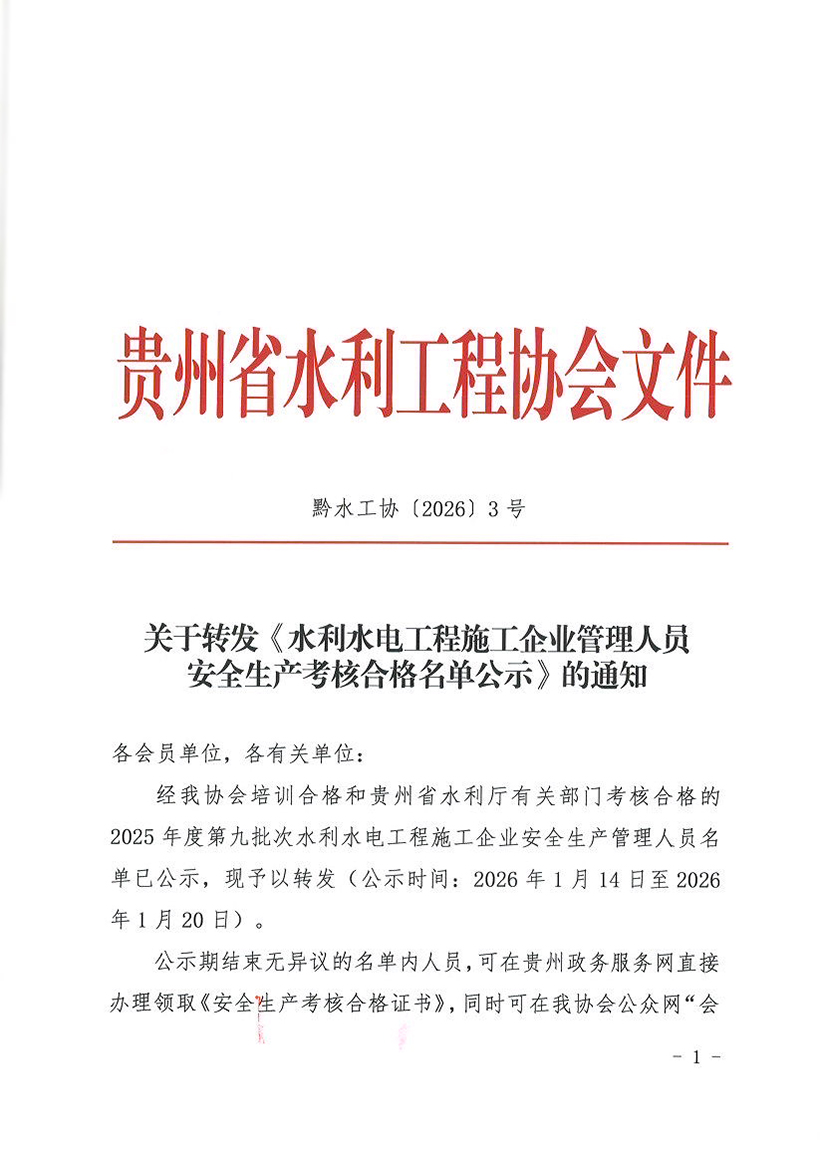 关于转发《水利水电工程施工企业管理人员安全生产考核合格名单公示》的通知