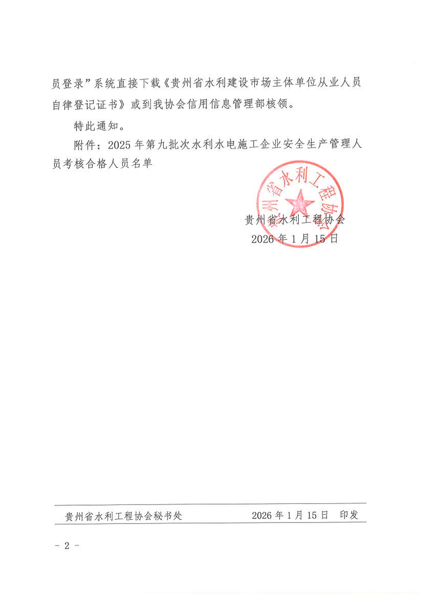 2025年第九批次水利水电工程施工企业管理人员安全生产考核合格名单