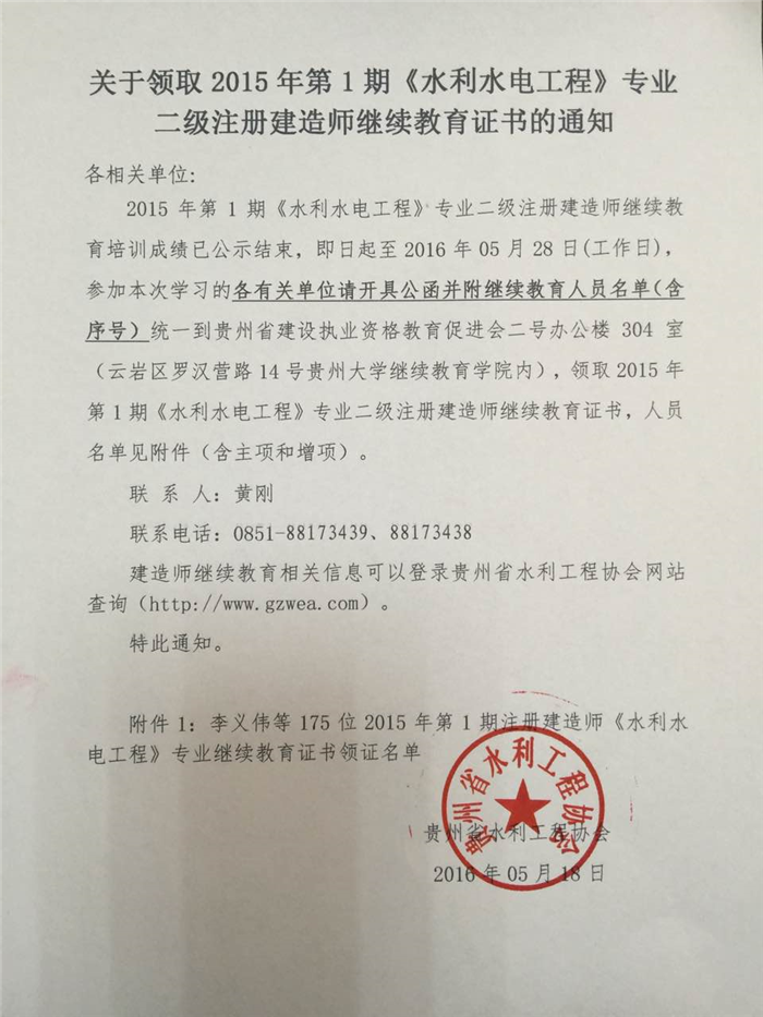 关于领取2015年第1期《水利水电工程》专业二级注册建造师继续教育证书的通知