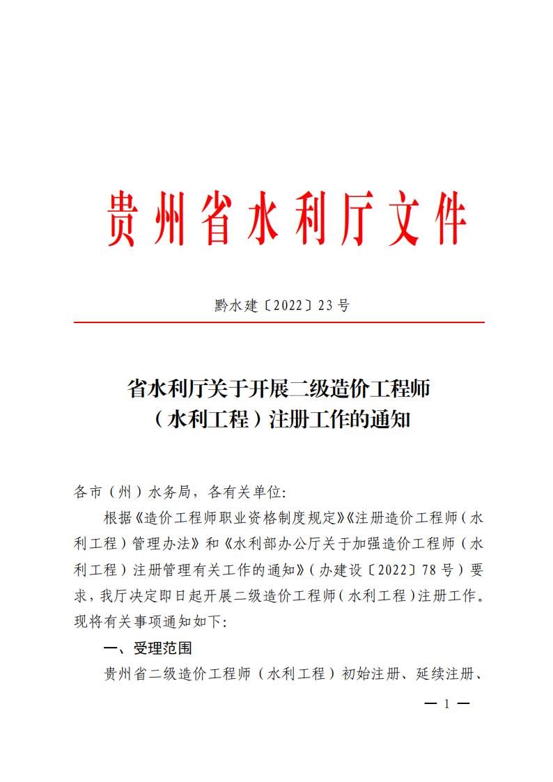 转发省水利厅关于开展二级造价工程师(水利工程)注册工作的通知