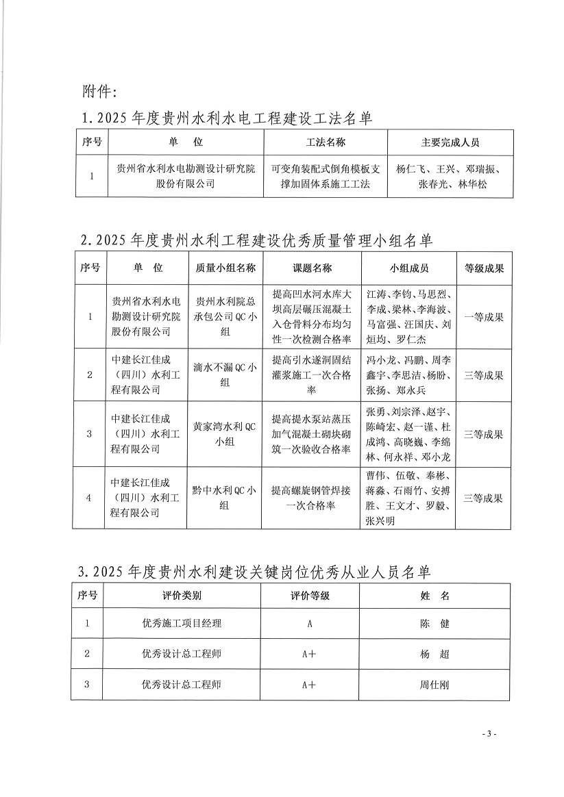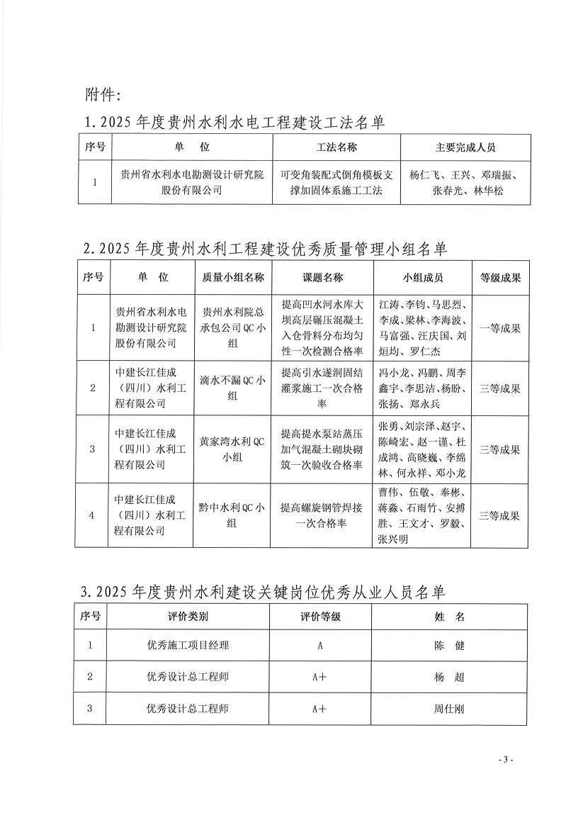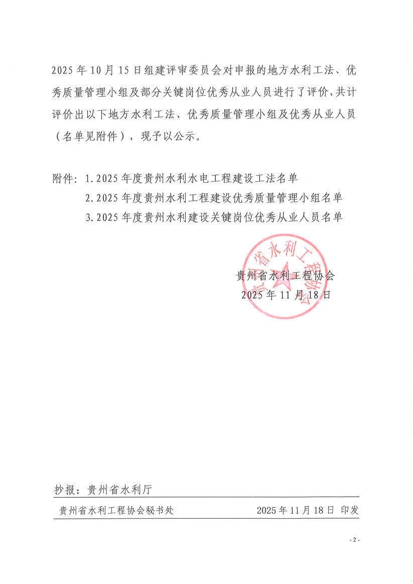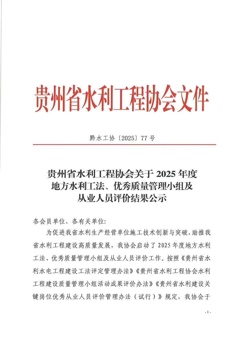 关于2025年度地方水利工法、优秀质量管理小组及从业人员评价结果公示