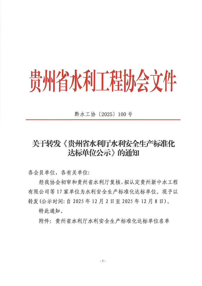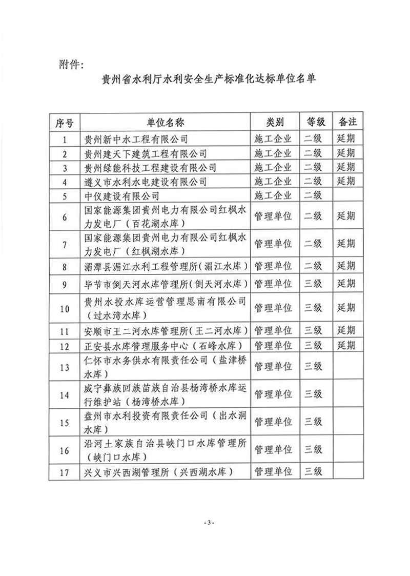 关于转发《贵州省水利厅水利安全生产标准化达标单位公示》的通知