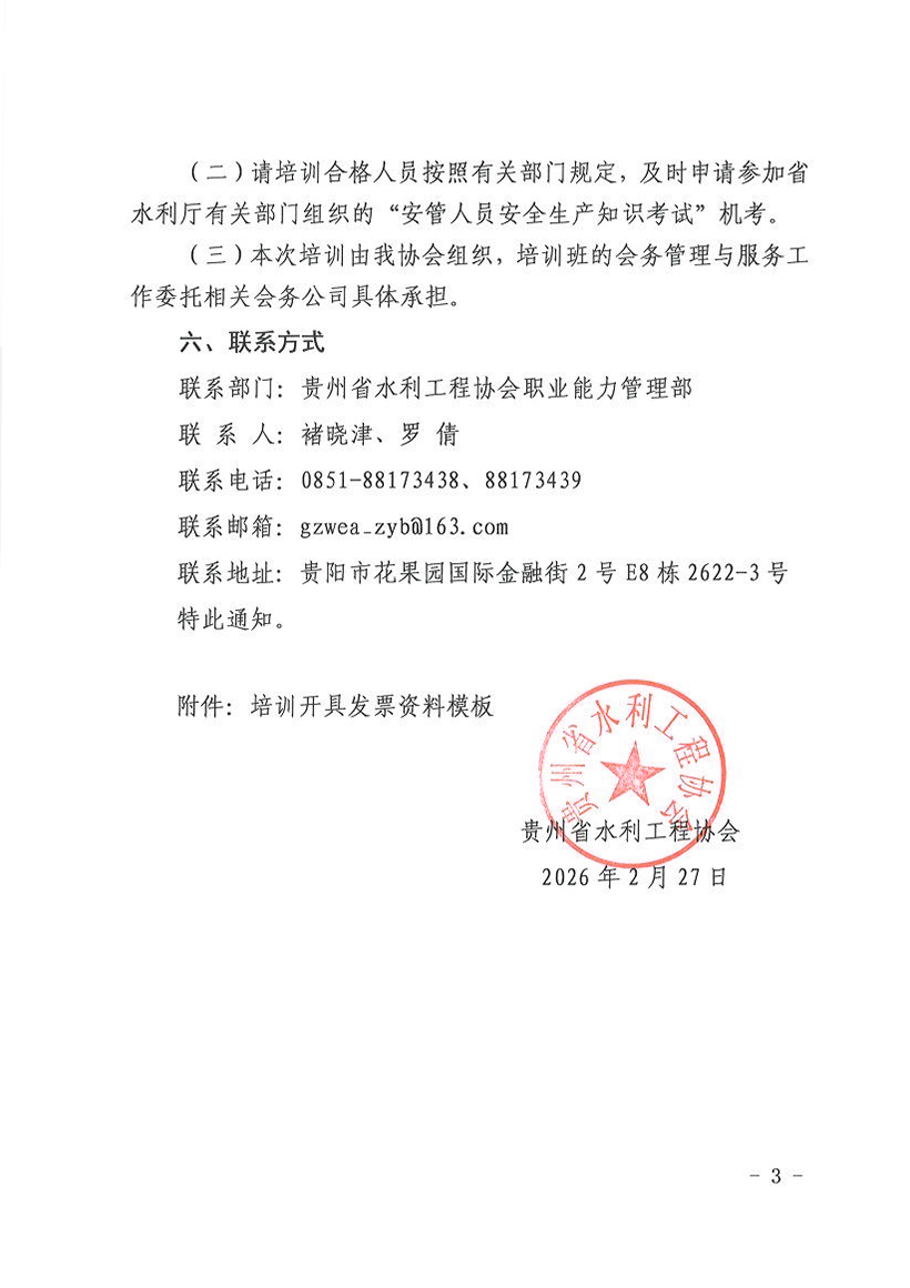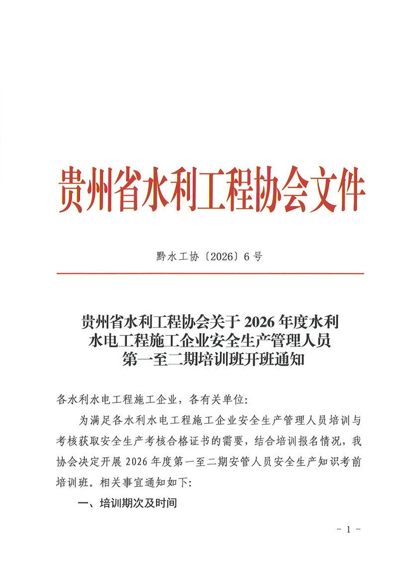 关于2026年度水利水电工程施工企业安全生产管理人员第一至二期培训班开班通知