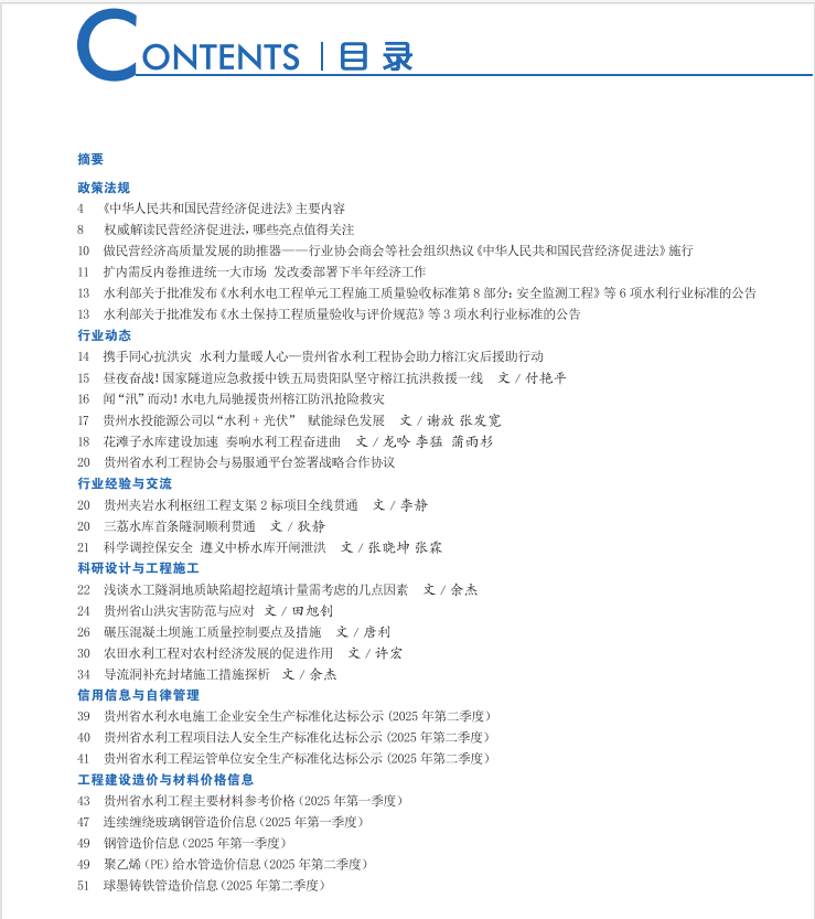 主办单位:贵州省水利工程协会编印单位:贵州省水利工程协会
