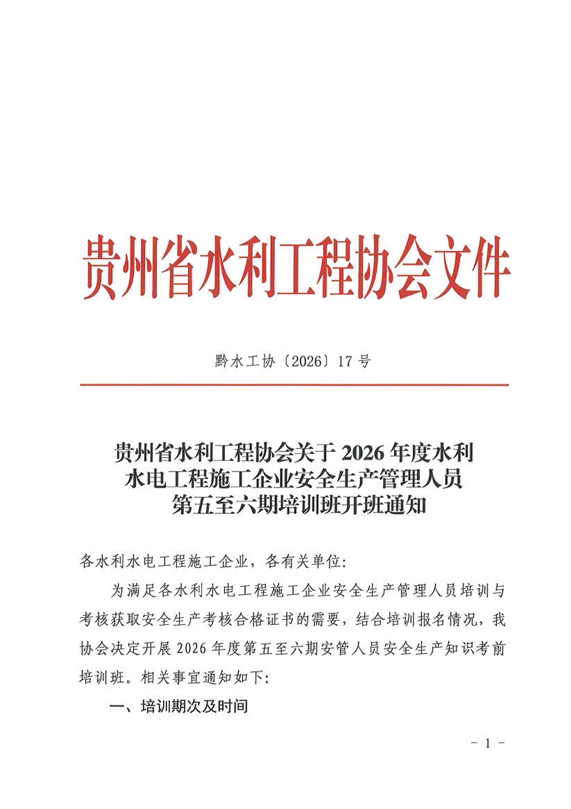 关于2026年度水利水电工程施工企业安全生产管理人员第五至六期培训班开班通知