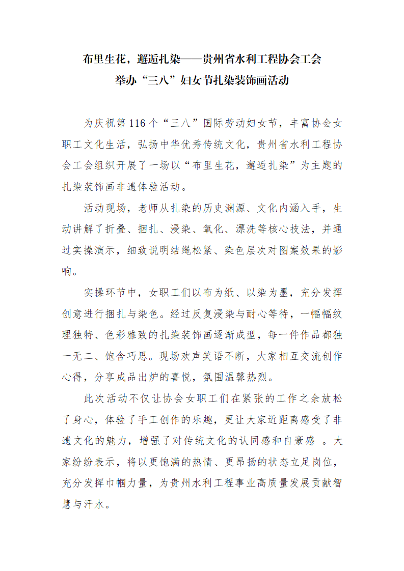 简讯:贵州省水利工程协会工会举办“三八”妇女节扎染装饰画活动